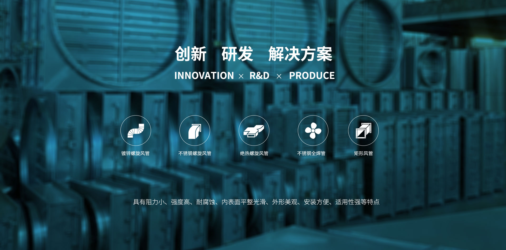 專業為鍍鋅螺旋風管、不銹鋼螺旋風管、絕熱螺旋風管、不銹鋼全焊管、矩形風管等產品